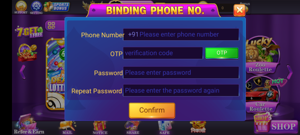 TeenPatti Club Apk ko Registration karne ke liye app ko open karte hi aapko Register ( Mobile Number Bound) ka option dikega. Usame aapko Apna Mobile Number ko dalkar otp send karna hai fir otp ko dalna hai. Usake bad aapko password banana hai.