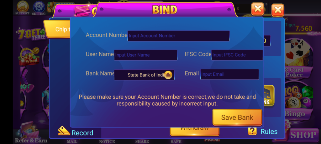 upar diye gaye photo me aapko sab dekhne ko milega isame aapko sab dal kar apne jite hua ko sidhe apane bank account me withdrawal kar lena hai.